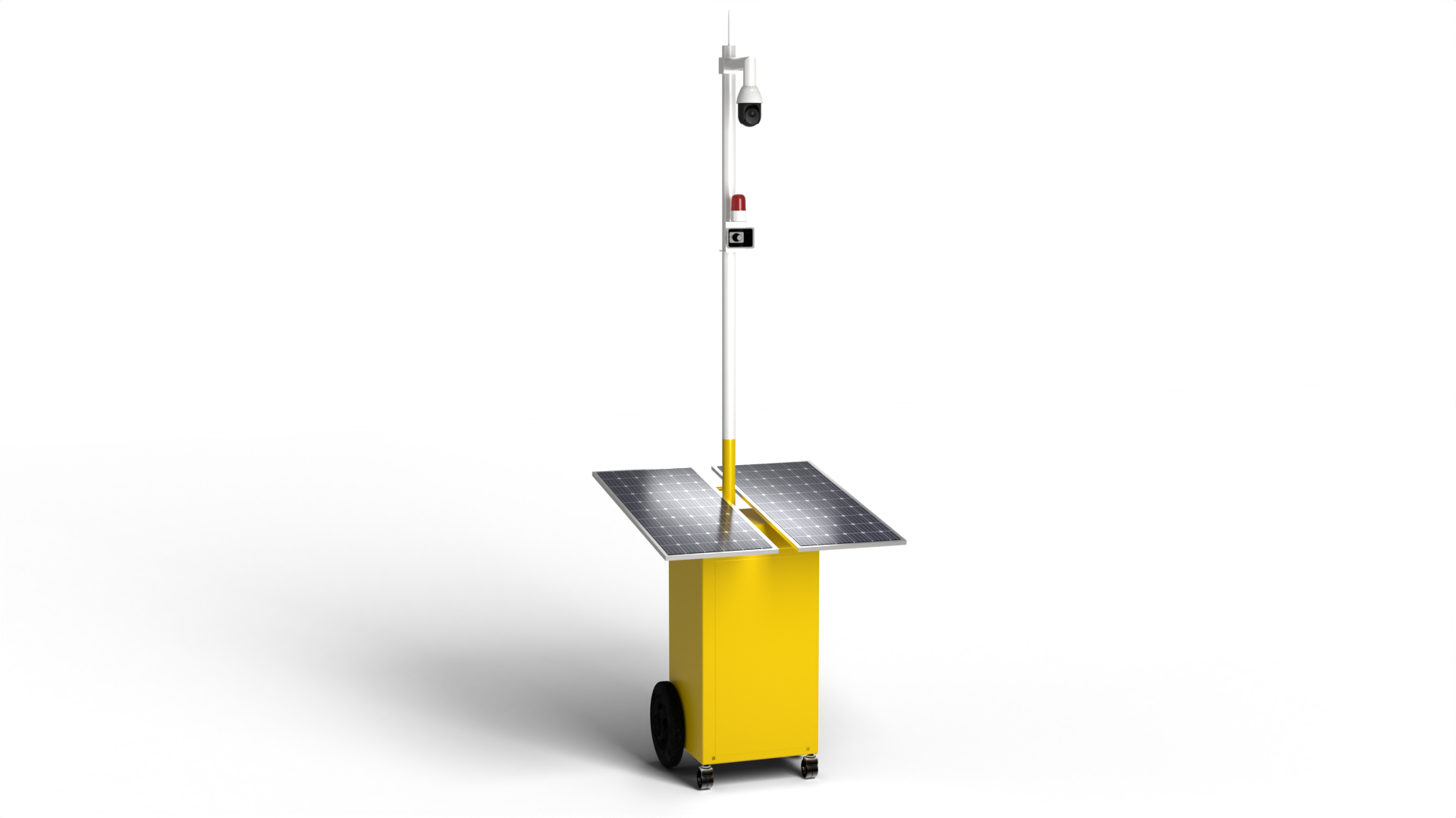 移动式智能监控终端主要应用于施工工地等机动性监控区域,具备一定的防水防尘防盗性能,由设备外壳、声光报警器、喊话喇叭、摄像头、主控箱、电池、太阳能充电板以及主控制器一系列元器件组成